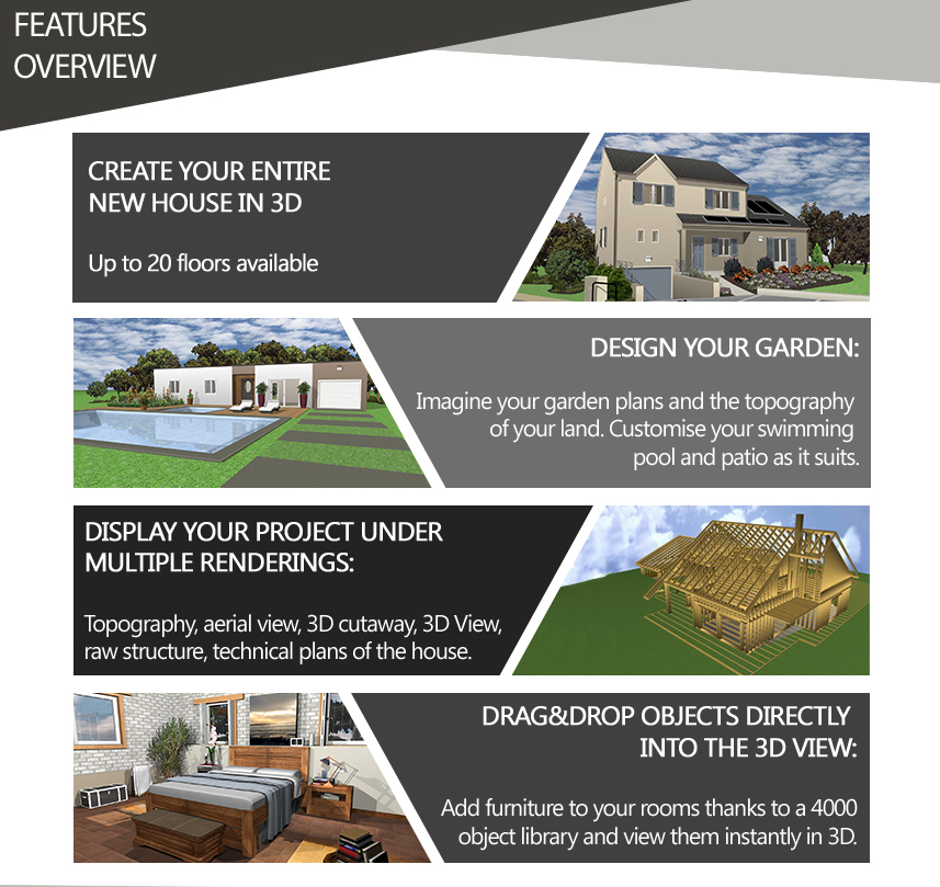 Architect 3D là một ứng dụng thiết kế kiến trúc cho phép bạn thiết kế, bố trí và trang trí cho ngôi nhà, sân vườn trong môi trường 3D. Công trình của bạn được thiết kế từng bước, từng phòng, từ tầng hầm lên đến mái. Vẽ mặt bằng nhà, bố trí nội thất và ngoại thất cho ngôi nhà của bạn, tạo sự tương tác của riêng bạn cho không gian sống. Architect 3D Ultimate 2017 mang đến cho bạn tất cả các công cụ chuyên nghiệp nhất để giúp bạn thiết kế căn nhà một cách hoàn hảo nhất.